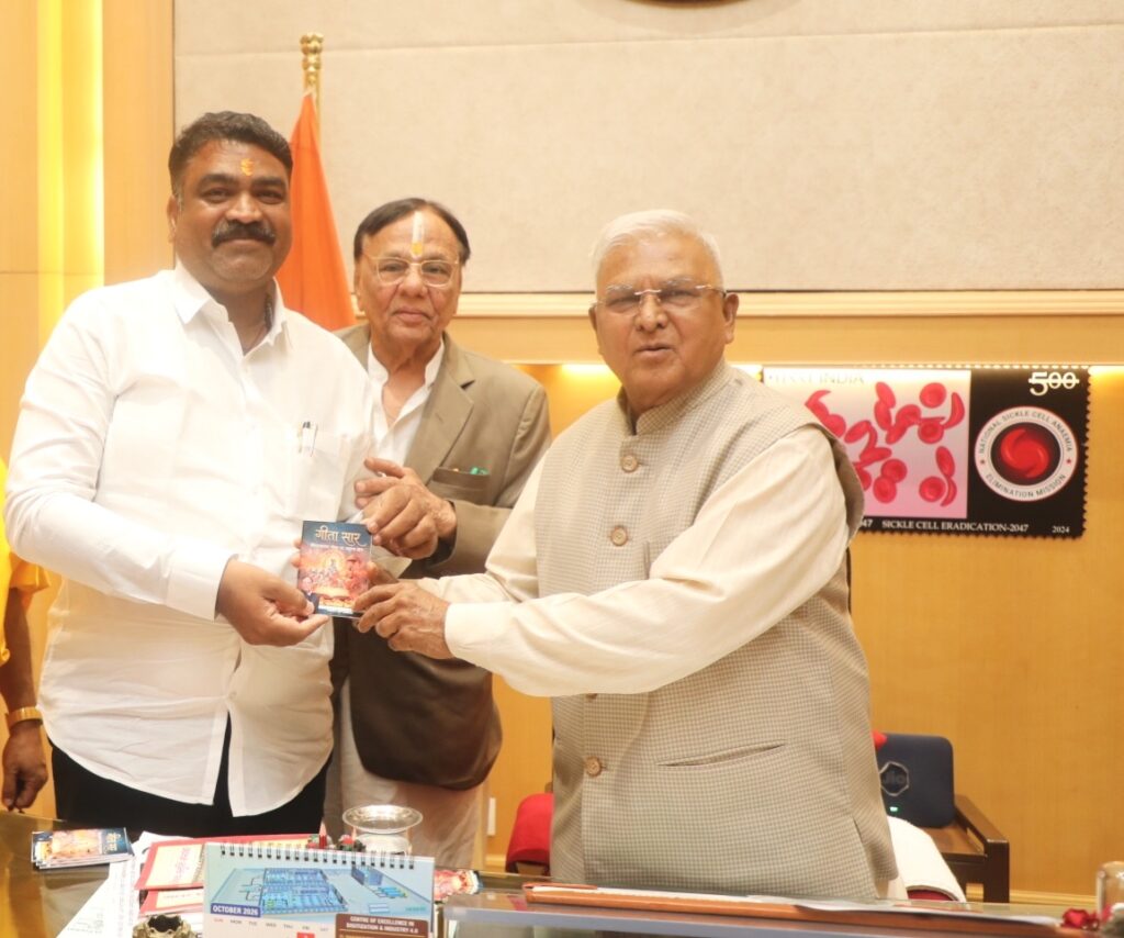 या प्रसंगी महाराष्ट्र राज्य पत्रकार संघाचे राज्य सरचिटणीस तथा दैनिक समर्थ गांवकरीचे संपादक डॉ. विश्वासराव आरोटे यांनी राज्यपालांना गीता सार ही पुस्तिका भेट देऊन भारतीय संस्कृती व मूल्यांची जपणूक करण्याचा संदेश दिला.