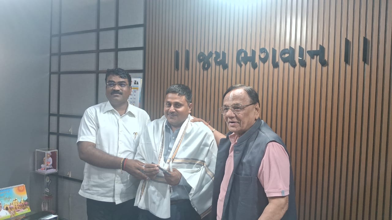 या प्रसंगी दैनिक समर्थ गांवकरीचे मंत्रालय प्रतिनिधी विष्णू बुरे यांचेही नानजीभाई ठक्कर यांच्या हस्ते विशेष स्वागत करण्यात आले.