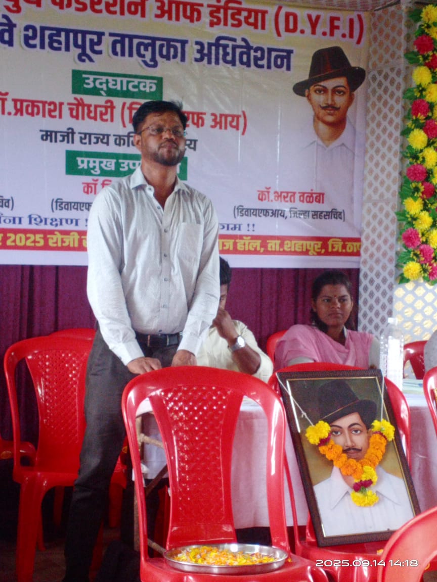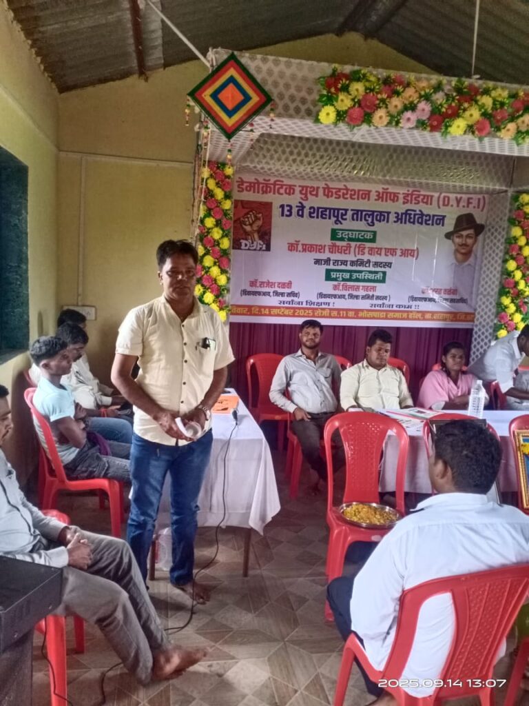 डेमोक्रॅटिक युथ फेडरेशन ऑफ इंडिया (डीवायएफआय)चे १३ वे शहापूर तालुका अधिवेशन नुकतेच संपन्न झाले. दिनांक १४ सप्टेंबर २०२५ रोजी समाज हॉल भोसपाडा, शहापूर येथे हे एक दिवशीय अधिवेशन भरवण्यात आले होते. अधिवेशनात १३६ पेक्षा जास्त प्रतिनिधींची उपस्थिती होती. अधिवेशनाची सुरुवात डीवायएफआयचे ध्वज फडकावून करण्यात आली.