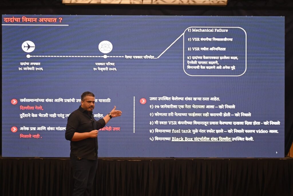 बारामती येथे घडलेल्या खासगी विमान दुर्घटनेनंतर वातावरण आणखी तापले आहे. राष्ट्रवादी काँग्रेस (शरद पवार गट) आमदार रोहित पवार यांनी पत्रकार परिषदेत थेट सवाल उपस्थित करत, हा केवळ अपघात नसून घातपात असू शकतो, असा संशय व्यक्त केला.
