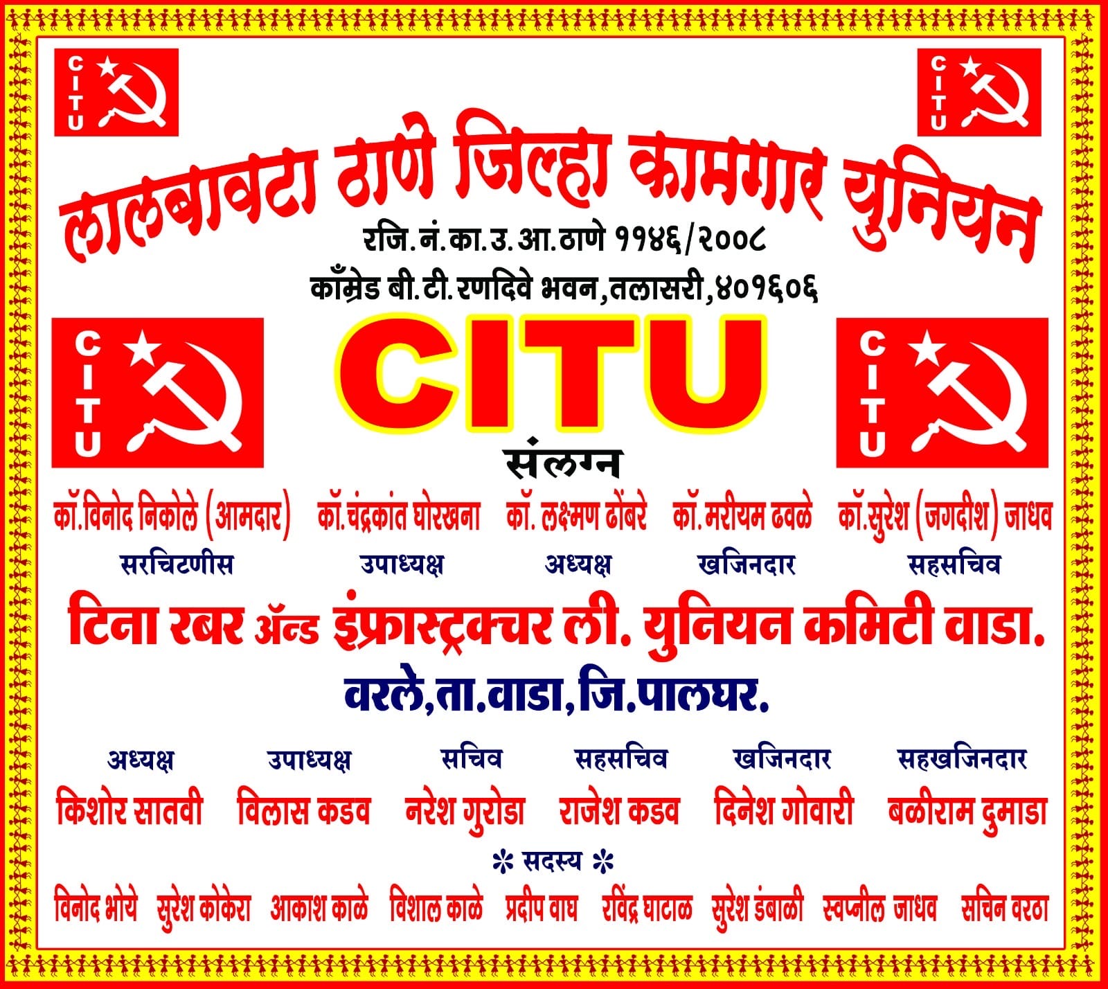 वाडा-वरले येथे लाल बावटा पुरस्कृत सी. आय.टी.यु.कामगार फलकाचे अनावरण माक्सवादी कम्युनिस्ट पक्षाचे आमदार श्री. विनोद निकोले यांच्या हस्ते झाले
