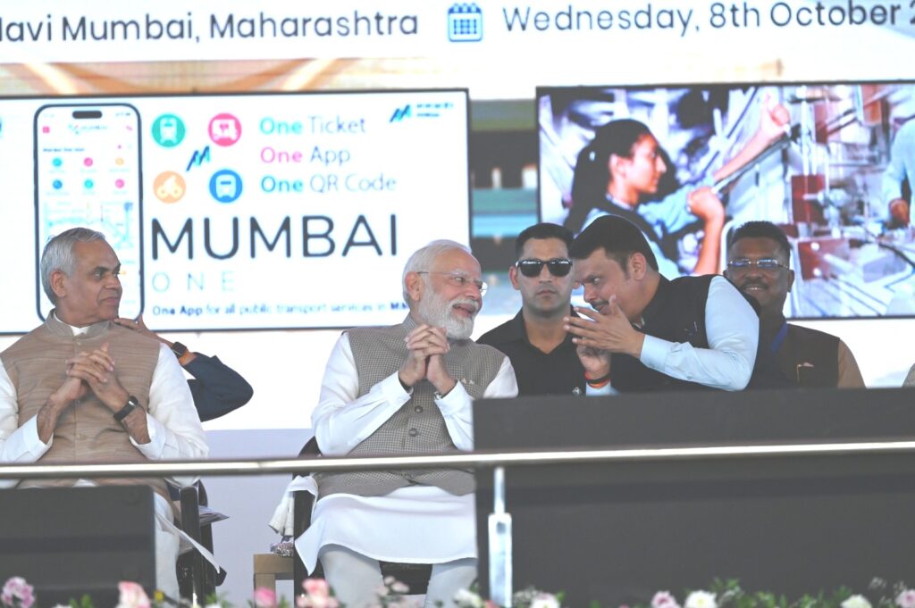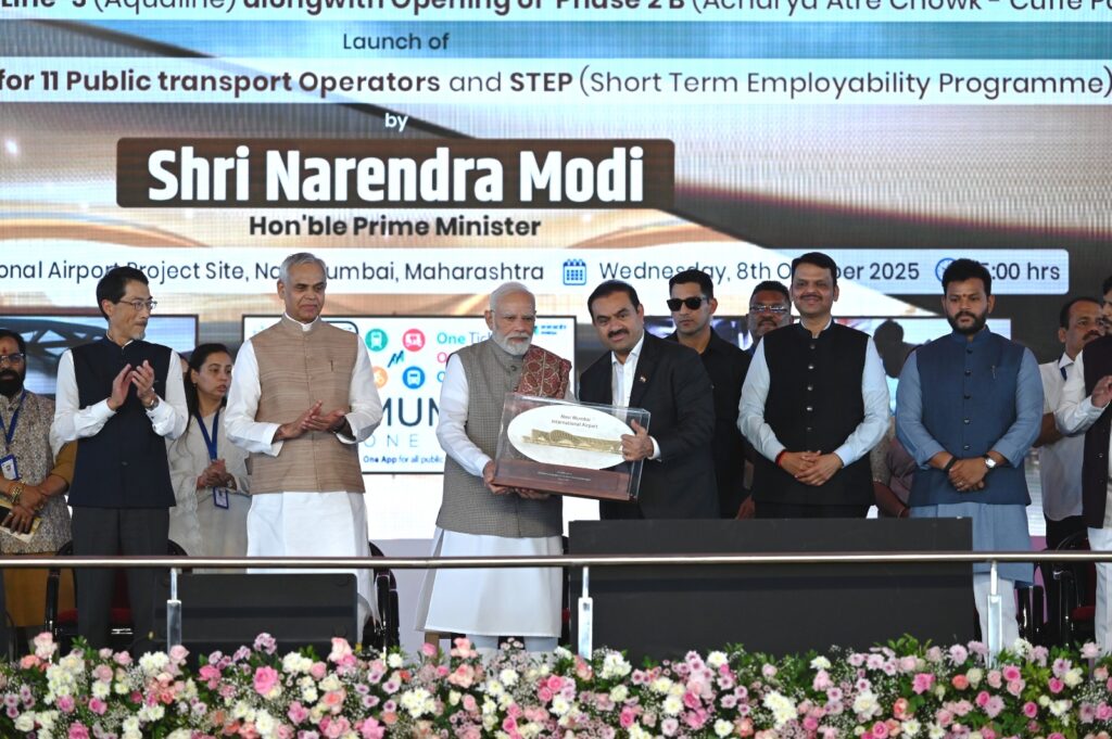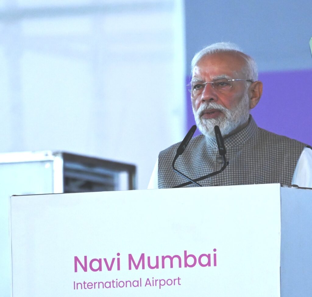 नवी मुंबई, दि. ८ : आजचा दिवस केवळ प्रकल्पांच्या उद्घाटनाचा नव्हे, तर भारताच्या झपाट्याने होत असलेल्या परिवर्तनाचे आणि प्रगतीच्या दिशेने घेतलेल्या ठोस पावलांचे प्रतीक आहे. मुंबईतील विविध प्रकल्पांमुळे देशाचा वेग आणि विकास अधोरेखित झाला आहे. पायाभूत सुविधांतील गुंतवणूक, तरुणांसाठी रोजगार संधी हे विकसित भारताच्या दिशेने टाकलेले मजबूत पाऊल असल्याचे प्रतिपादन प्रधानमंत्री नरेंद्र मोदी यांनी केले.