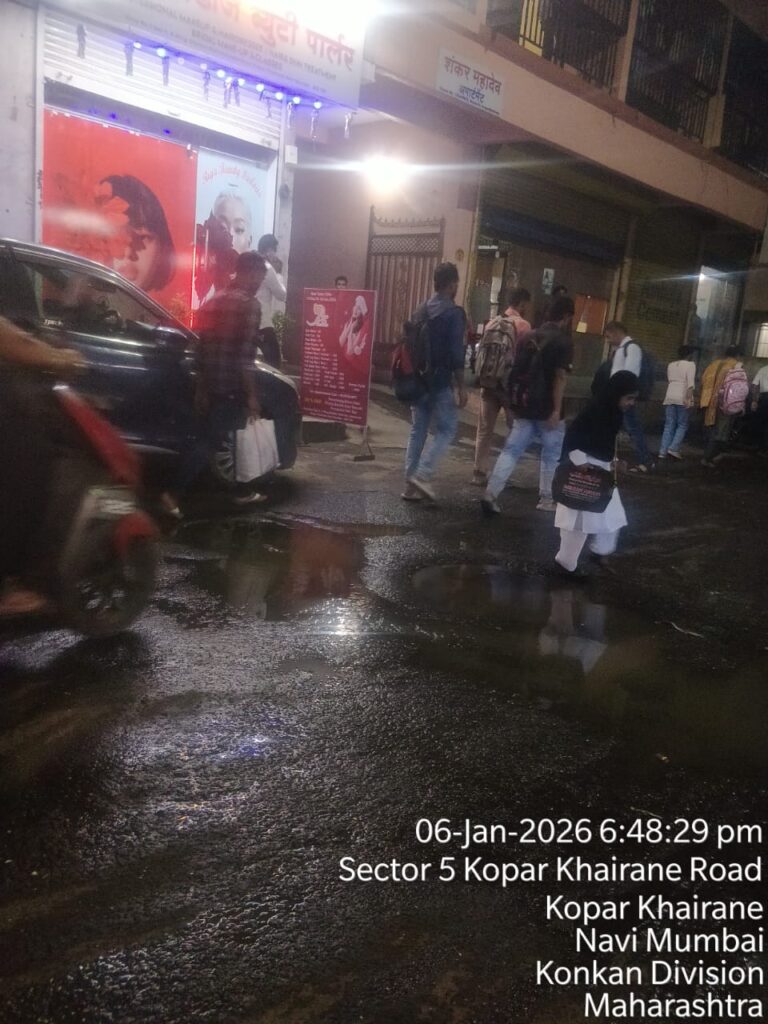 या गंभीर समस्येकडे नवी मुंबई महानगरपालिका तसेच कोपरखैरणे वॉर्ड कार्यालयातील संबंधित अधिकारी जाणीवपूर्वक दुर्लक्ष करत असल्याचा आरोप स्थानिक नागरिकांकडून केला जात आहे. नागरिकांनी वारंवार तक्रारी करूनही अद्याप कोणतीही ठोस कार्यवाही झालेली नसल्याने संताप व्यक्त होत आहे.