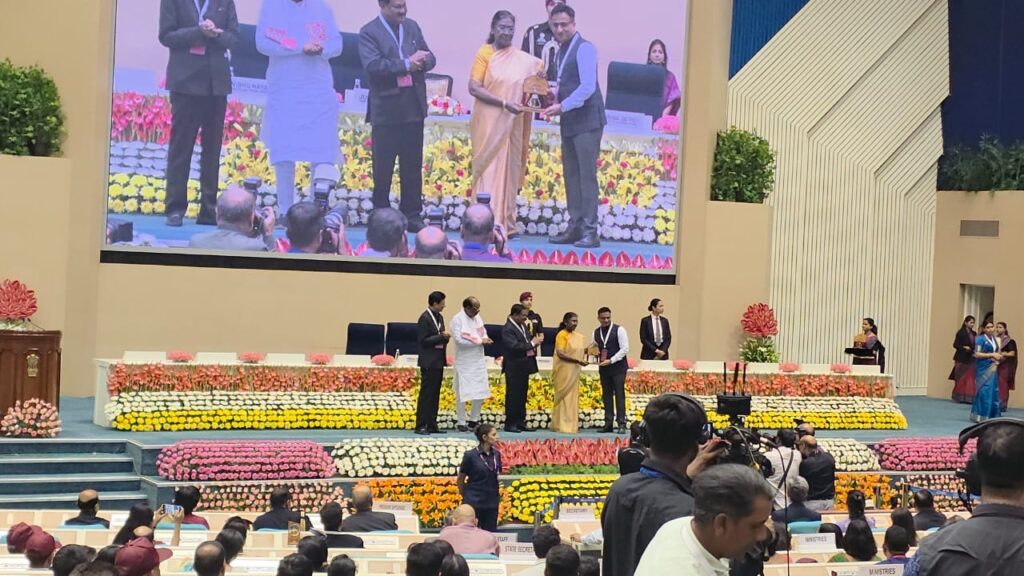 पालघर दिनांक 20 ऑक्टोबर : आदि कर्मयोगी अभियान” अंतर्गत उत्कृष्ट कामगिरी केल्याबद्दल पालघर जिल्ह्याला राष्ट्रीय पुरस्काराने सन्मानित करण्यात आले. हा सन्मान महामहीम राष्ट्रपती महोदया द्रौपदी मुर्मू यांच्या उपस्थितीत प्रदान करण्यात आला असून, जिल्ह्याच्या सर्वसमावेशक विकास कार्याची ही दखल मानली जात आहे.