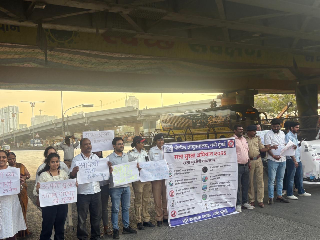 या जनजागृती कार्यक्रमास तुर्भे वाहतूक शाखेचे PSI कोकणी, ASI पाटील तसेच PN/4457 ढेंबरे हे पोलीस अंमलदार उपस्थित होते. त्यांच्या मार्गदर्शनामुळे नागरिक व वाहनचालकांमध्ये रस्ता सुरक्षेबाबत सकारात्मक संदेश पोहोचला.